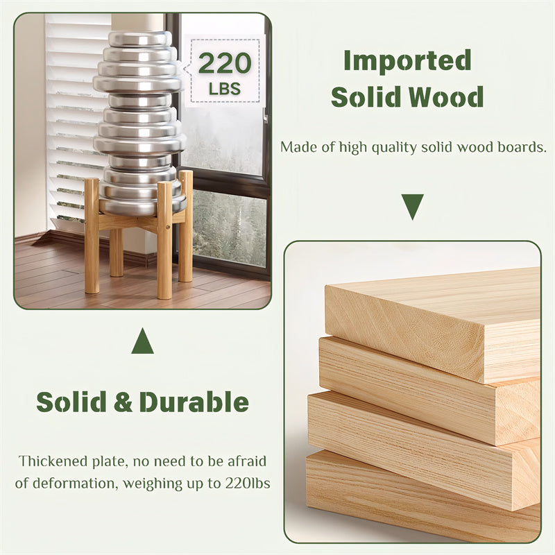 The plant stand is made of natural solid wood material, simple and sturdy, and waterproof and anti-corrosion at the same time. The plant stand has smooth lines and an elegant shape. It can withstand a maximum weight of 100 kilograms and can support large and heavy planters.