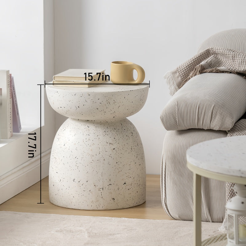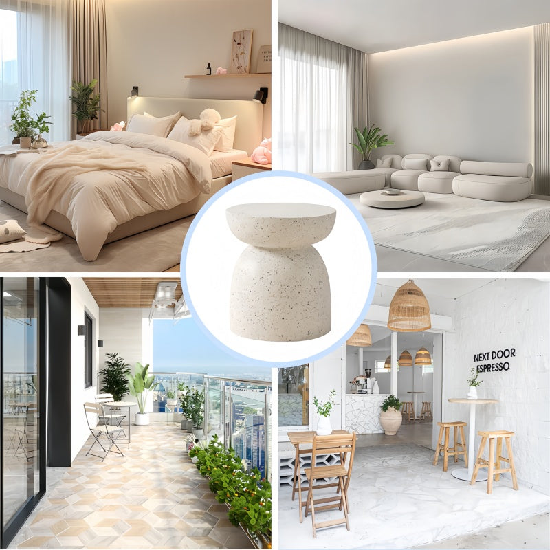 This modern side table blends minimalism with geometric design to add a stylish touch to any space. Made of durable magnesium chloride (MgO) composite material, it is durable, lightweight and weather-resistant. It is versatile and can be used indoors or outdoors as a side table, garden stool or plant stand, etc.