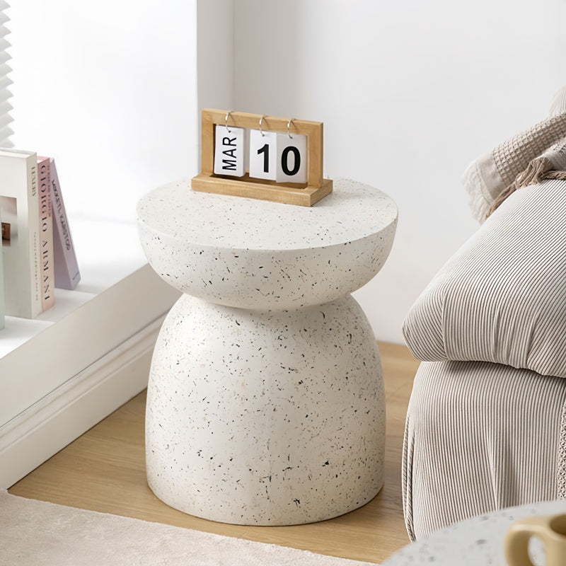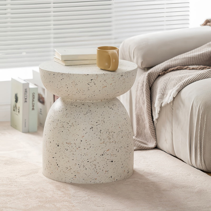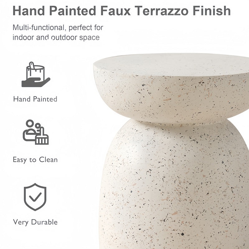 【Vintage Elegance】This modern side table features a simulated terrazzo look, simple and unique, modern and simple geometric outline design, paired with pink spots on the upper surface, the unique design gives this decorative table an elegant atmosphere, allowing it to seamlessly integrate into a variety of decorative styles.