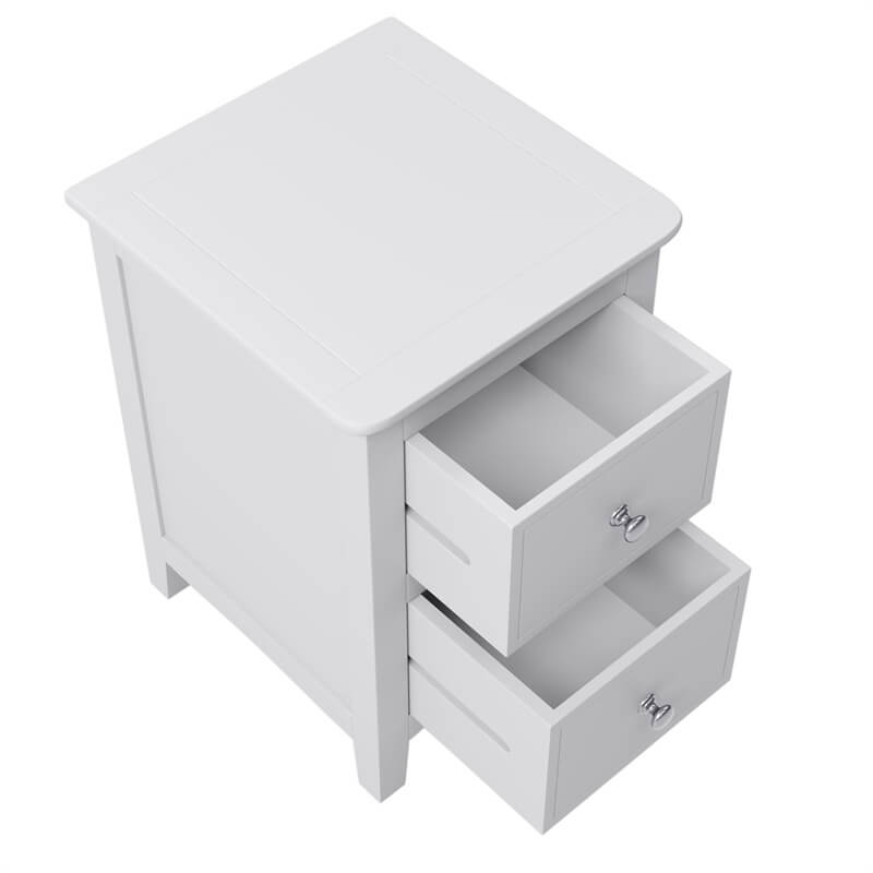 Our white side table with 2 drawers is widely suitable for many occasions. You can put these end tables in your office, by the side of your sofa, or for your bed as perfect nightstands. Simple looking and practical use, this end table is suitable for many occasions.