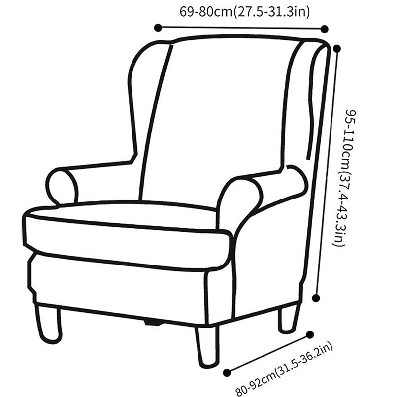 - Perfectly fit wing chair height between 37.4-43.3 inch/95-110 cm, width between 31.5-36.2 inch/80-92 cm, the length between 27.5-31.3 inch/69-80 cm.