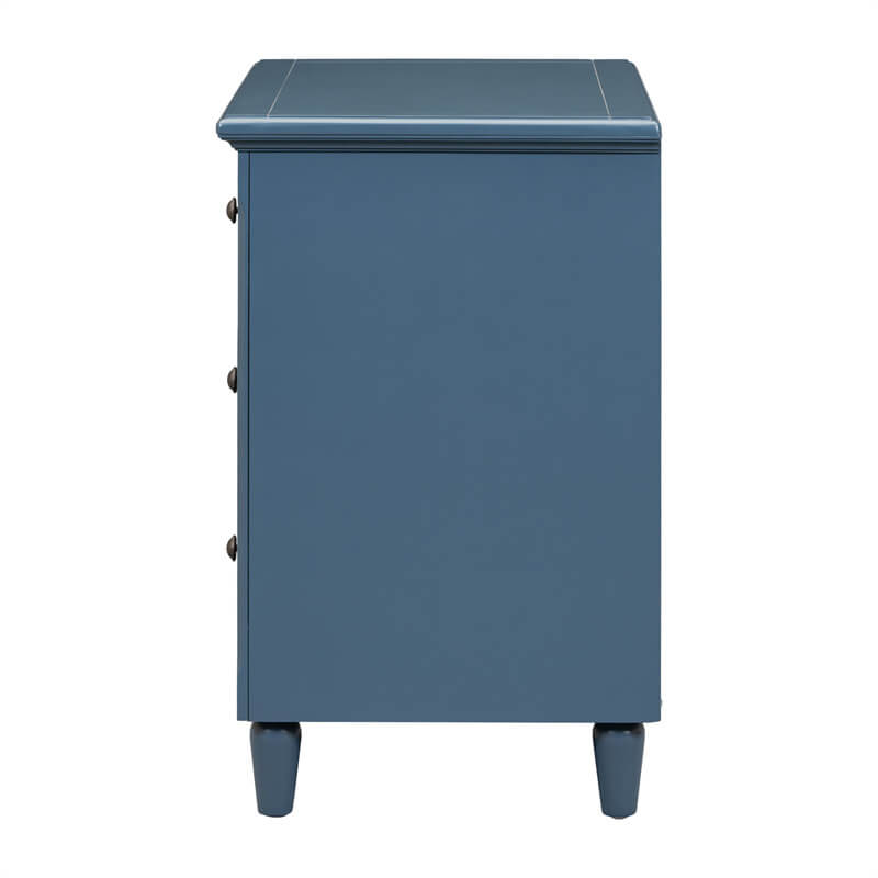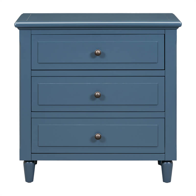 With three spacious drawers, this nightstand offers plenty of room to store all your essentials. The vintage solid-color finish with antique brass hardware creates a warm and sophisticated feel. The drawers feature full-extension drawer glides for easy opening and closing, making them the perfect addition to any bedroom. Raised cabinet feet are attractive and easy to clean, providing you with a tidy space.