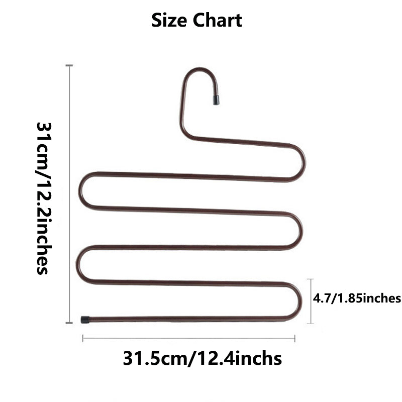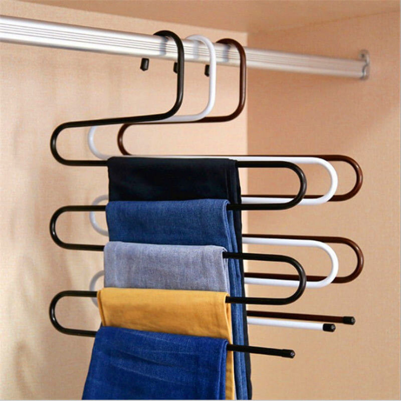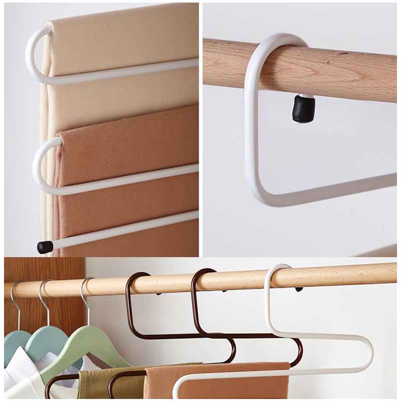 Great Space Saver: The S-type pants hanger with 5 tiers can save your closet space much, easy to keep your closet clean and neat by using it.Each hanger can hold up 5 pants at the same time.