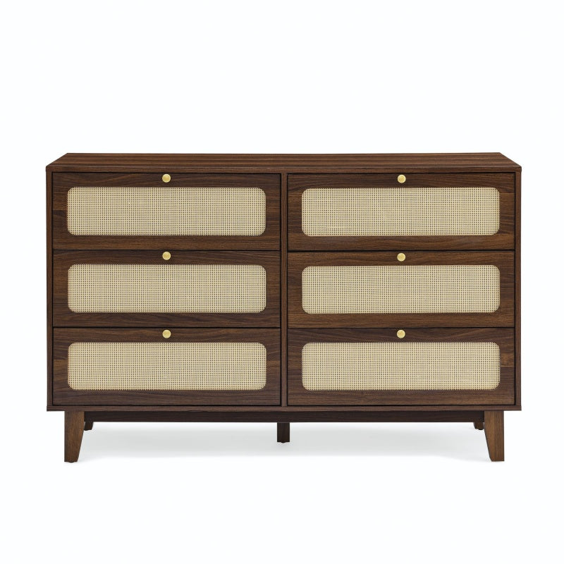High-quality materials: This six-drawer cabinet is made of high-quality MDF high-density board. The wooden frame is stable, the surface is melamine veneer, and the brushed surface is made of PVC rattan weaving technology, which is waterproof, moisture-proof, and easy to clean.