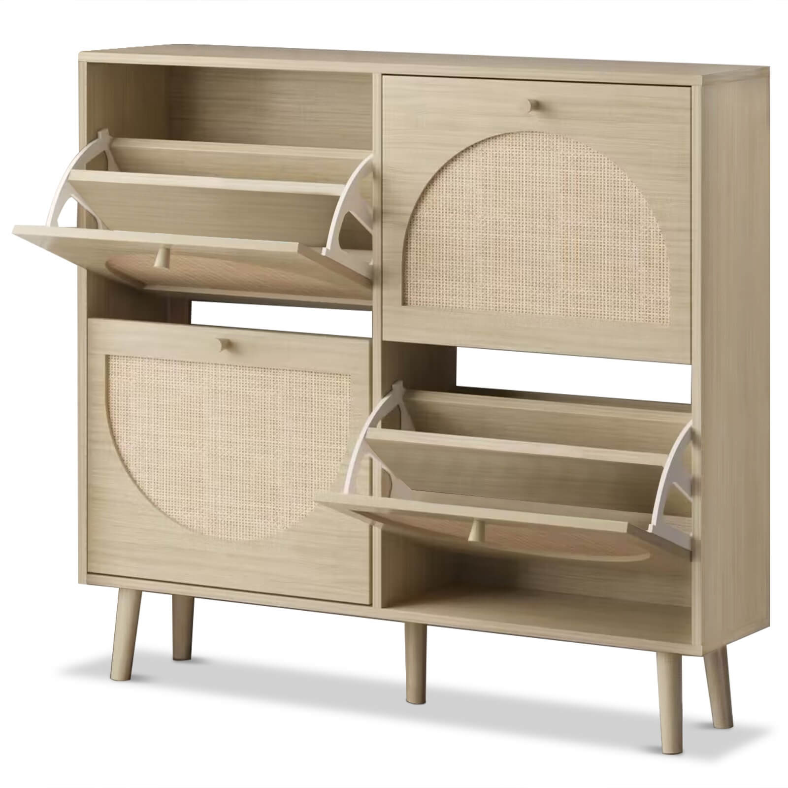 4-Drawer Rattan Shoe Cabinet, its modern design complements any space while providing ample storage space with sleek and eco-friendly rattan drawers.