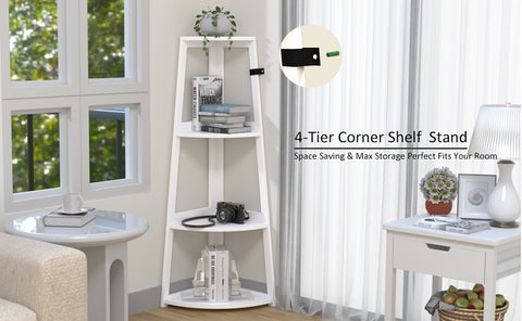 Utilizing Space Effectively- This corner shelf offers ample storage space while utilizing the corner space effectively. Its fan-shaped shelves provide a smooth round edge and are perfect for displaying photos, plants, and crafts, or even using it as a bookshelf.