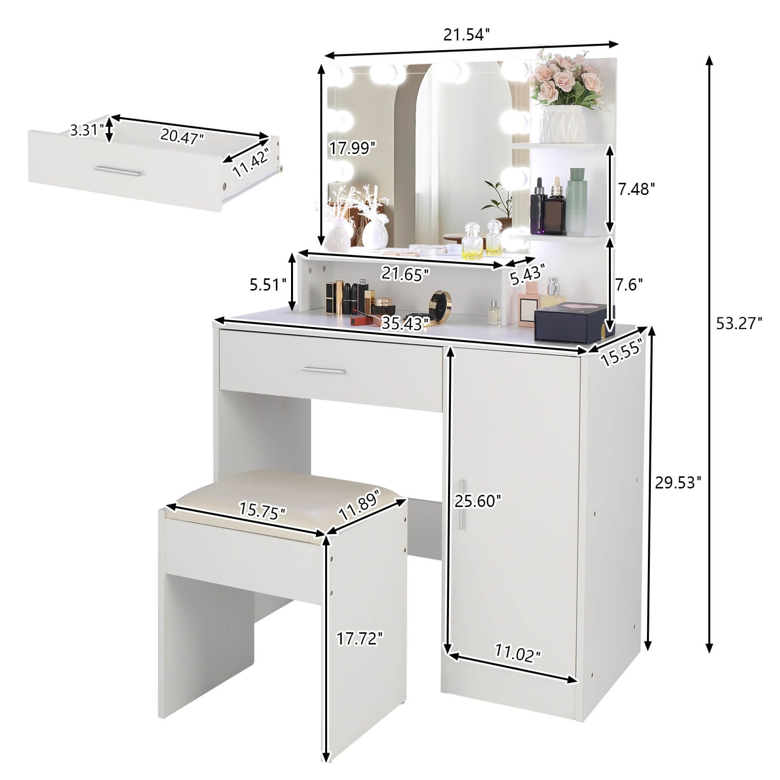 Stylish and practical: This vanity has a versatile look that complements a variety of room decor. The large tabletop is perfect for storing all your makeup, perfumes, and trinkets within easy reach.