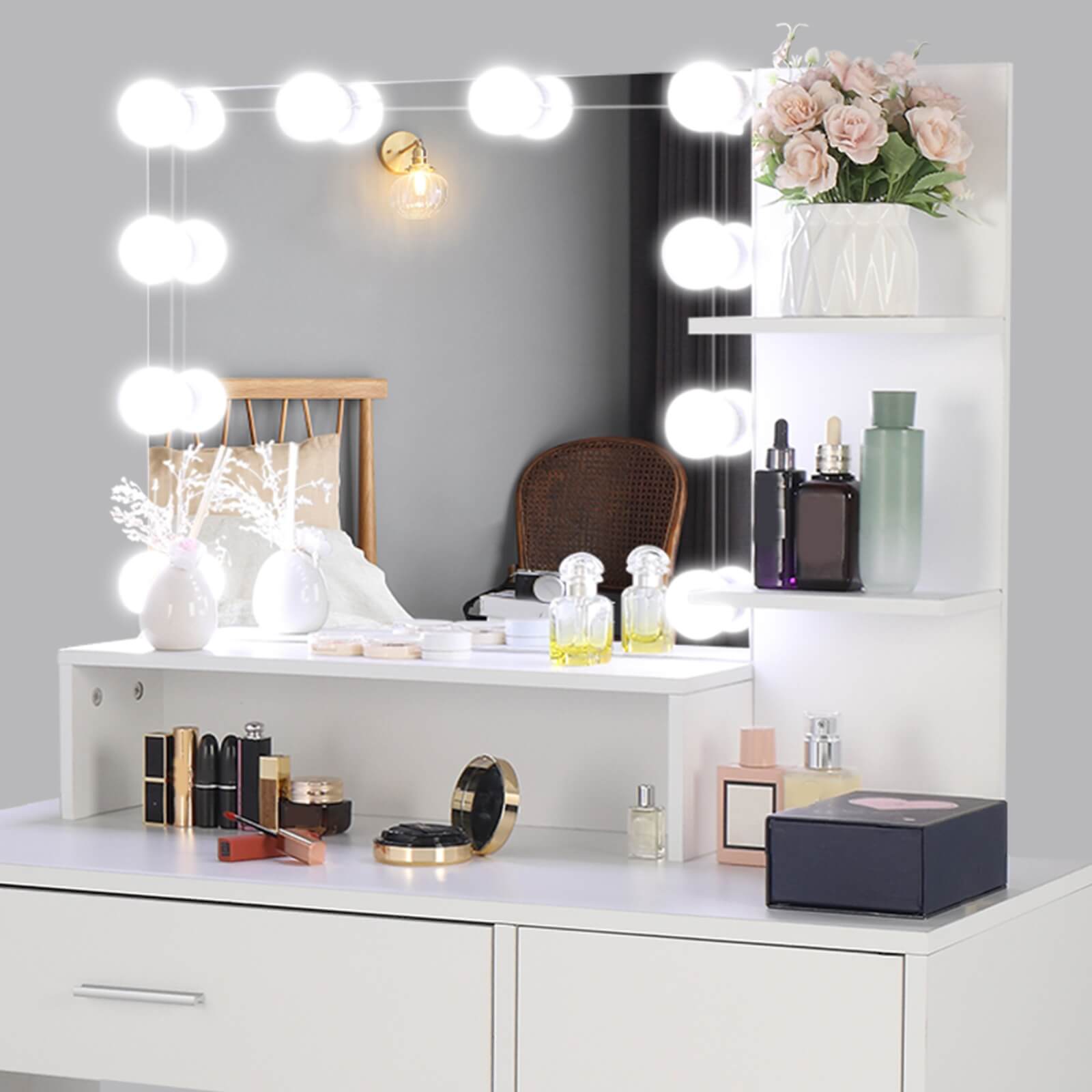 Gorgeous Hollywood-style lighted mirror: The mirror's 10 LED bulbs illuminate evenly from all directions to help you create your best makeup look. The light color is adjustable so you can get the light right for you and your room.