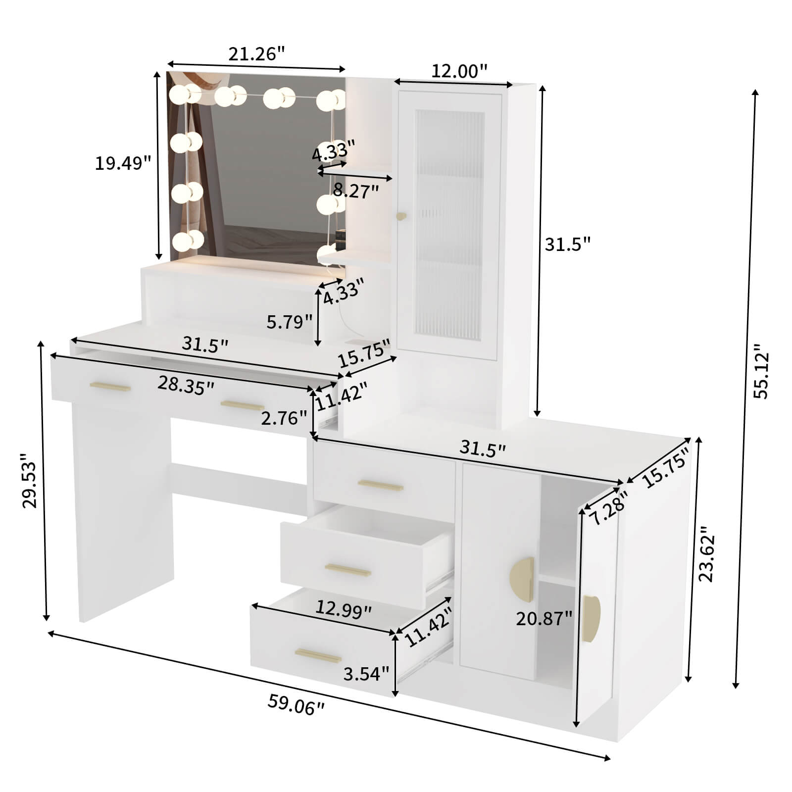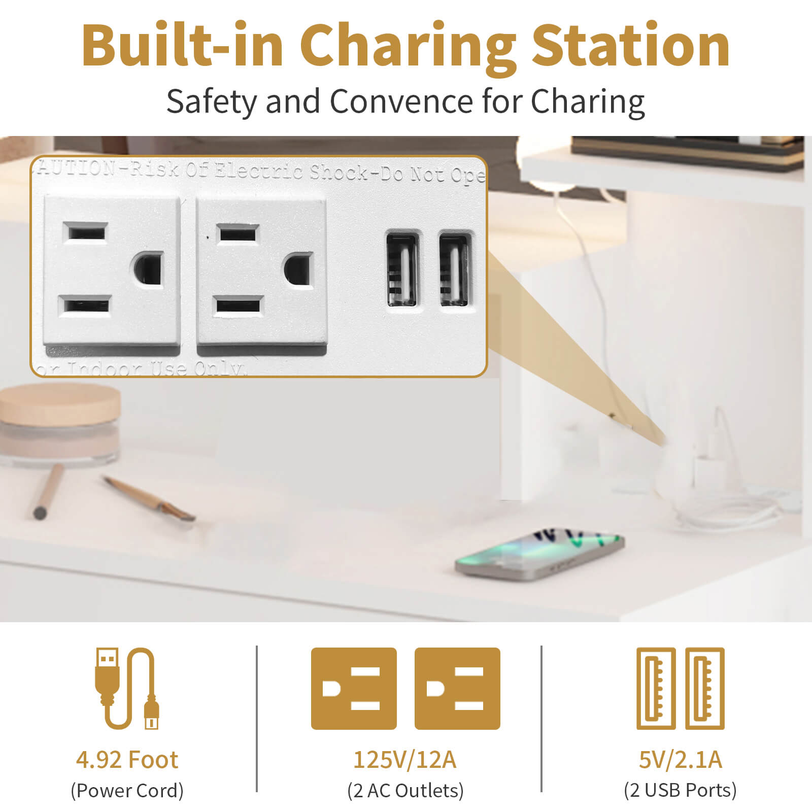 Built-in Charging Station: This vanity comes with 2 standard sockets and 2 USB ports, allowing you to easily charge your phone, or tablet or plug in your hair tools, keeping everything at your fingertips for a seamless beauty routine.