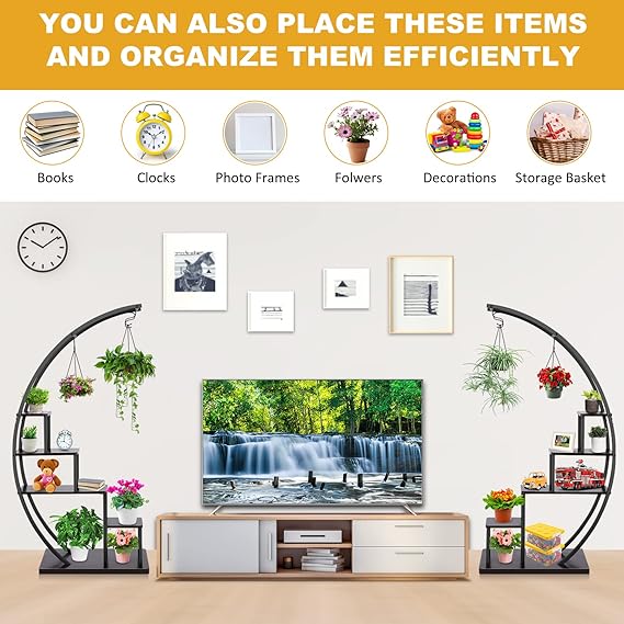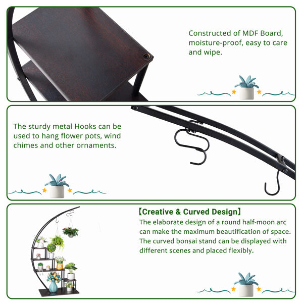 - Multi-layer Space: The 5-tier moon half plant stand adopts a 5-layer ladder structure, capacity is about 11 pots that are designed to allow for maximum sunlight for each plant.Besides, there exists 3 extra top S-hook for hanging baskets.