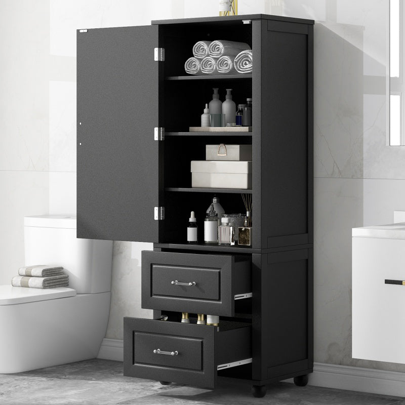 The black tall bathroom cabinet is made of high-quality medium-density fiberboard and spray-painted finish, and the surface is waterproof and moisture-proof paint to ensure long-term use. You can store your personal belongings, while the upper cabinet and two large drawers are convenient for hiding your private belongings.