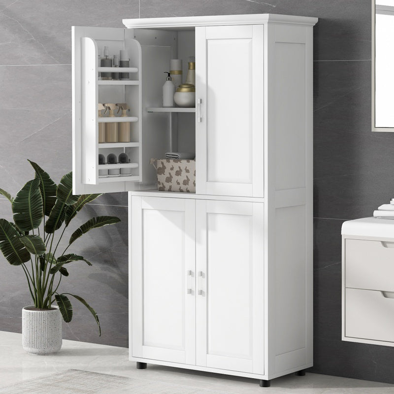 This bathroom storage cabinet is made of high-quality medium-density fiberboard and waterproof coating, with excellent stability and durability. The stylish design and modern style add elegant charm to your home. It is widely used in bathrooms, living rooms, kitchens, dining rooms, etc.