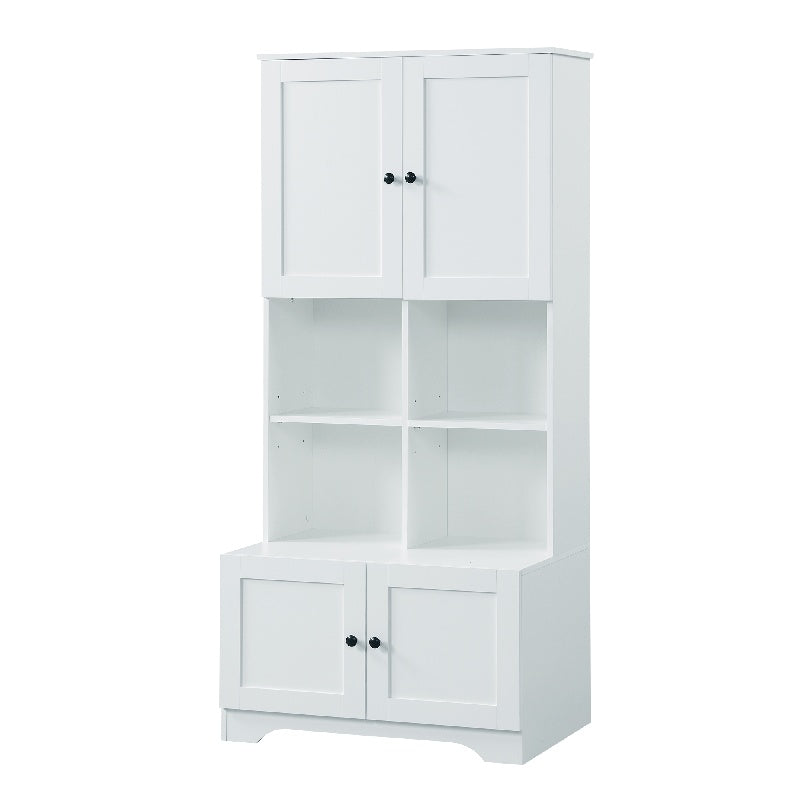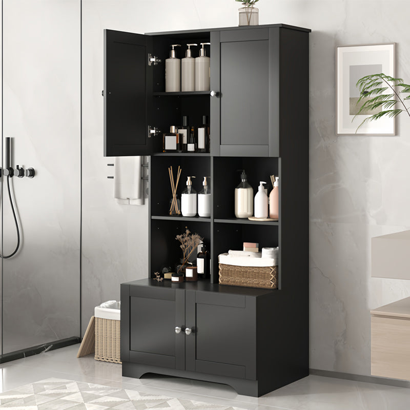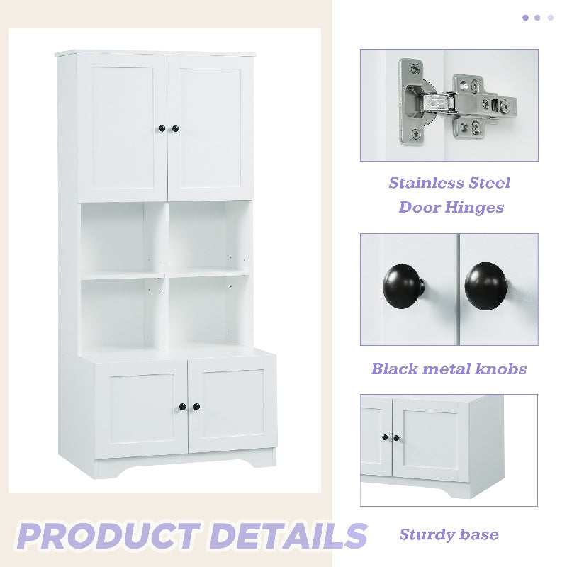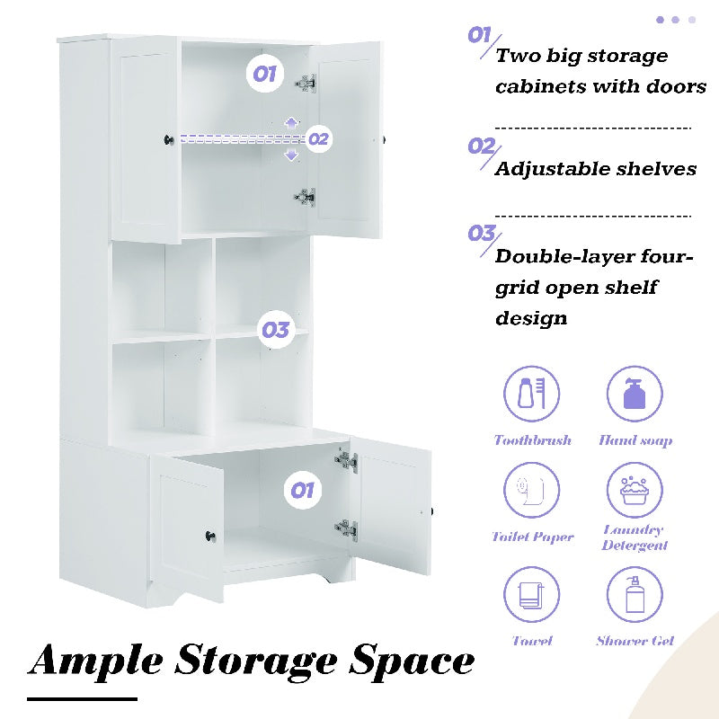 Ample storage space: This bathroom cabinet is equipped with upper and lower cabinets and four independent open storage compartments, which can provide ample space for your hair dryer, towels, cosmetics, bath products, etc.