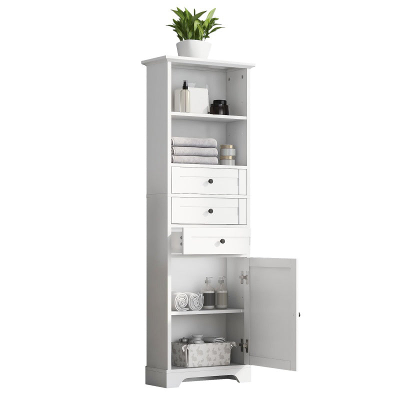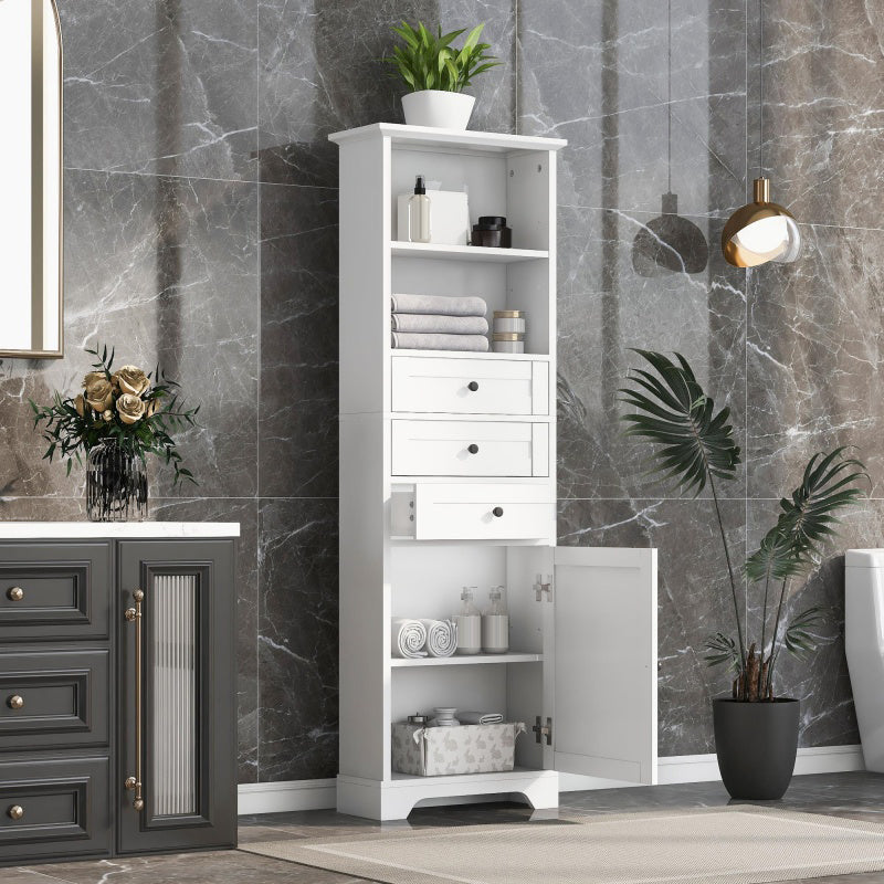 This 68.3-inch tall white bathroom cabinet with doors and shelves is made of high-quality high-density MDF board for durability. The smooth cabinet surface also makes this bathroom floor cabinet easy to clean in daily use.