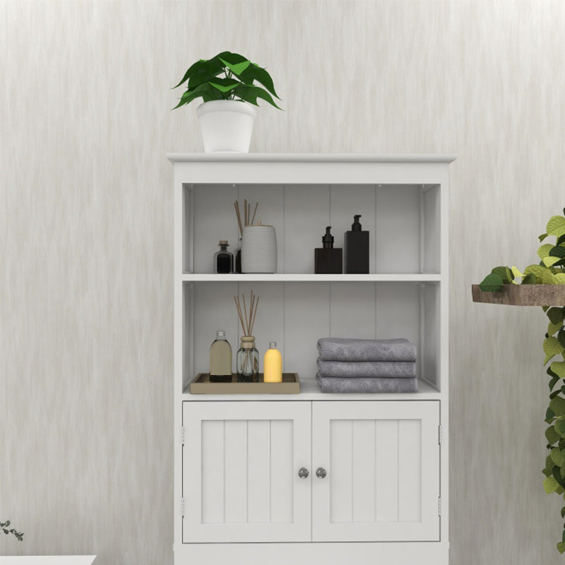 Carefully carved with clean lines and simple outlines, this white bathroom storage cabinet brings a modern and elegant look to your bathroom while upgrading your home storage space.