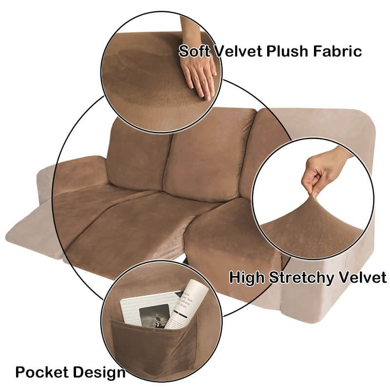 Perfect fit: This beautiful 8 Pieces recliner chair couch cover including 2 arm pieces,3 back cover pieces and 3 seat cover pieces, fit sofa length between 69-91 inch.with right side pocket and continuous footrest.