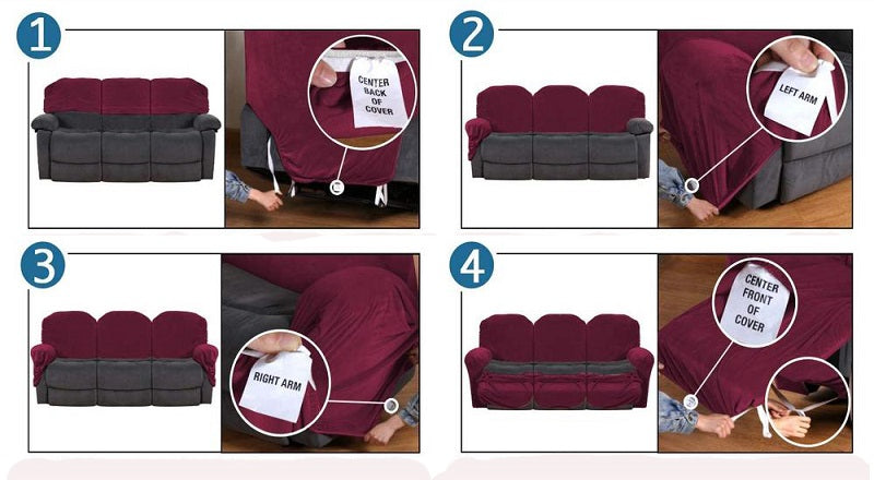 Non slip: The recliner sofa cover has elastic bands to cover the bottom edge, and each seat has two elastic loops at the rear corners, which can be pulled into the back of the backrest, and will not move even if you are sitting or taking a nap.