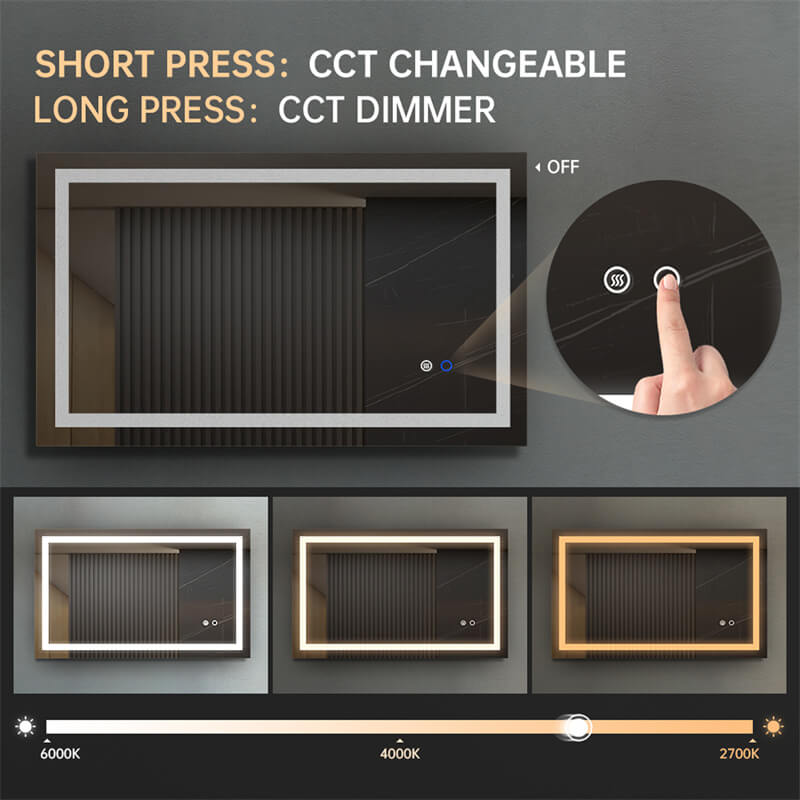 Our LED mirror with touch button control and anti-fog feature has a built-in LED chip that eliminates the need to replace bulbs. Adjustable color temperature, you can give your bathroom various ambient lighting. Simulates natural sunlight to protect your eyes, with a color rendering of up to 90 CRI, which is very accurate and allows you to see the truest side of yourself.