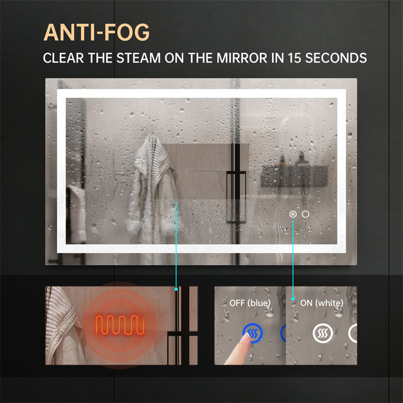 Our LED bathroom mirrors come with a built-in defogging touch sensor that removes water vapor from the mirror in 15 seconds, so you don't have to worry about fogging up at any time; it provides clear reflections even in humid conditions; perfect for quick and easy grooming after a shower.