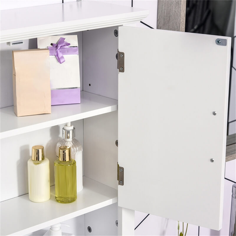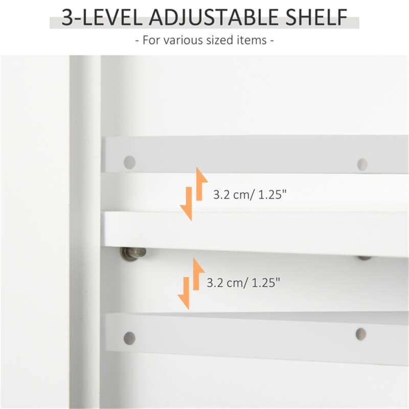 This medicine cabinet comes with a fixed top shelf, 2 shelves in the door, and 1 open fixed shelf at the bottom to provide you with plenty of storage space. The tier shelves in the door are height adjustable to meet your different storage needs. The open shelves allow you to quickly view and access your daily essentials.