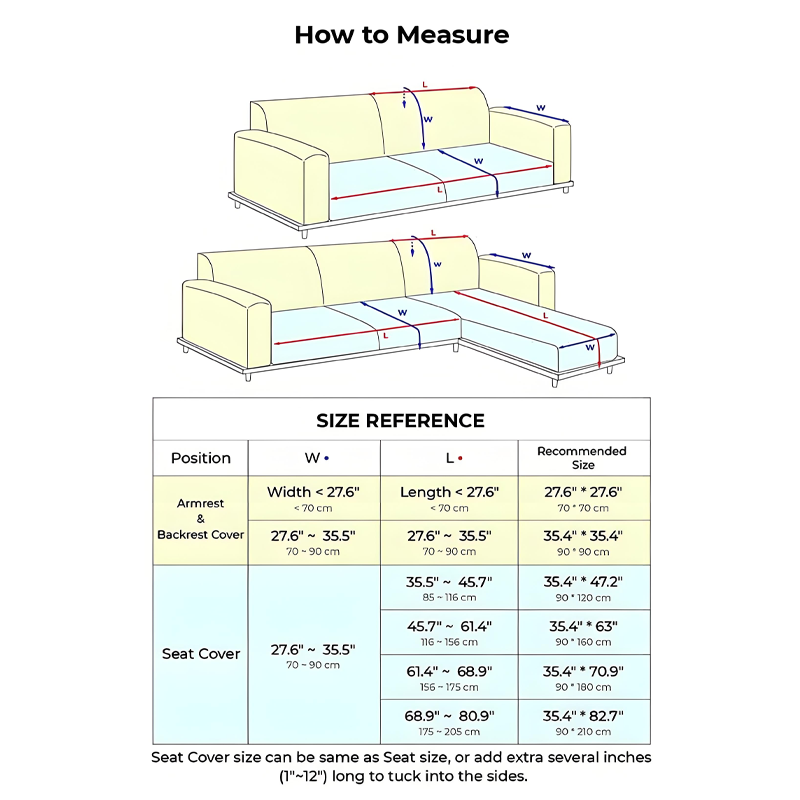 How to meature your sofa: Sold By Piece, Please refer to our measuring guide and measure your furniture prior to order