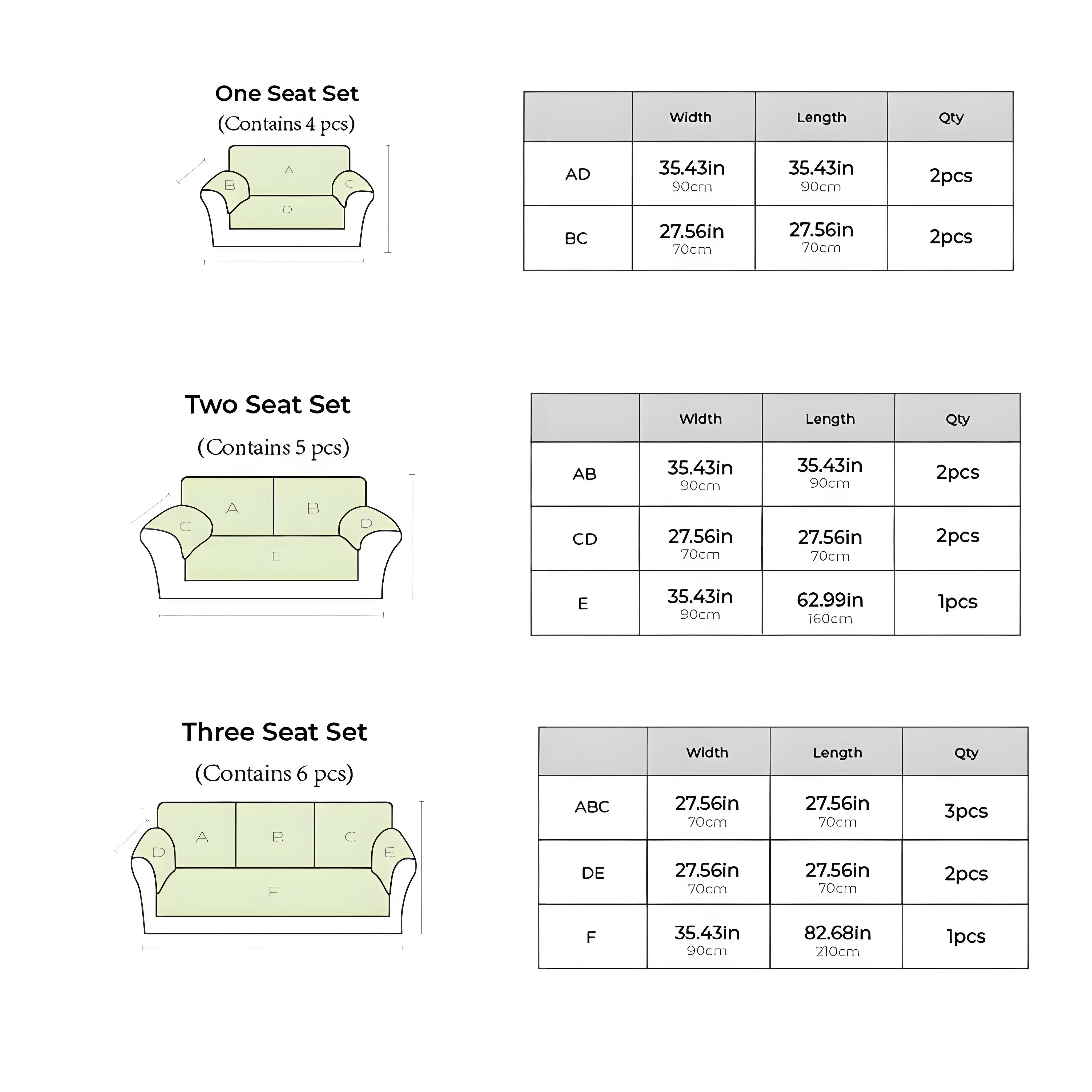 You also can buy by set: Please refer to our measuring guide and measure your furniture prior to order