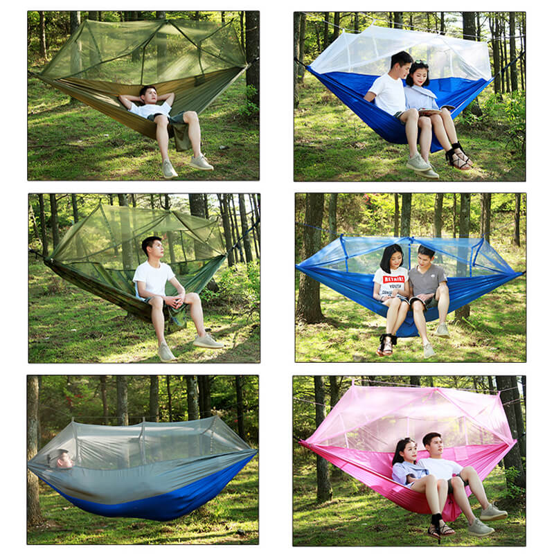 The Hammock with Mosquito Net: Whether you're relaxing by the fire or sleeping under the stars, Our camping hammock provides you with your comfort and safety needs, avoid mosquito bites.