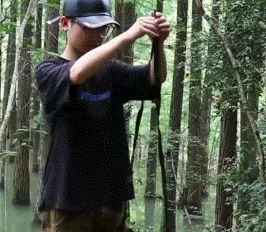 - Make one end of the strap go through the loop of the other end. Pull the strap tightly to tie it to the tree. You can wrap the strap more times as needed.