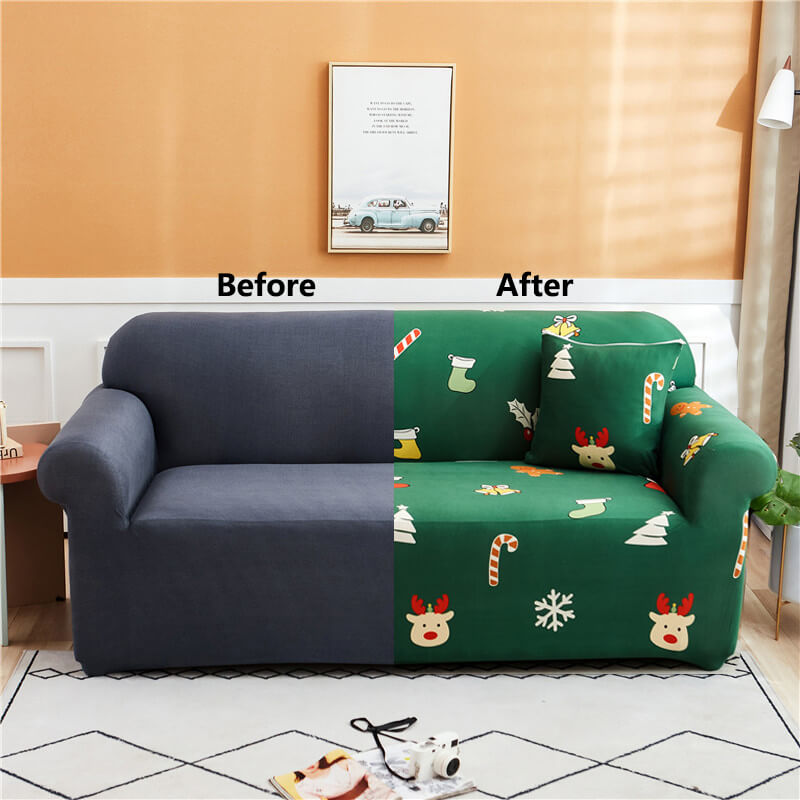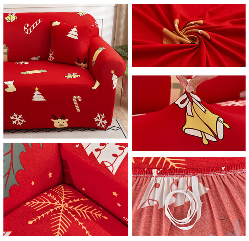 Superior Material-The Couch Cover made with spandex fabric,92% Polyester + 8% Spandex, comfortable and soft, eco-friendly, high elastic, durable and stylish, really a great Christmas decoration.