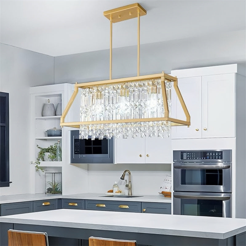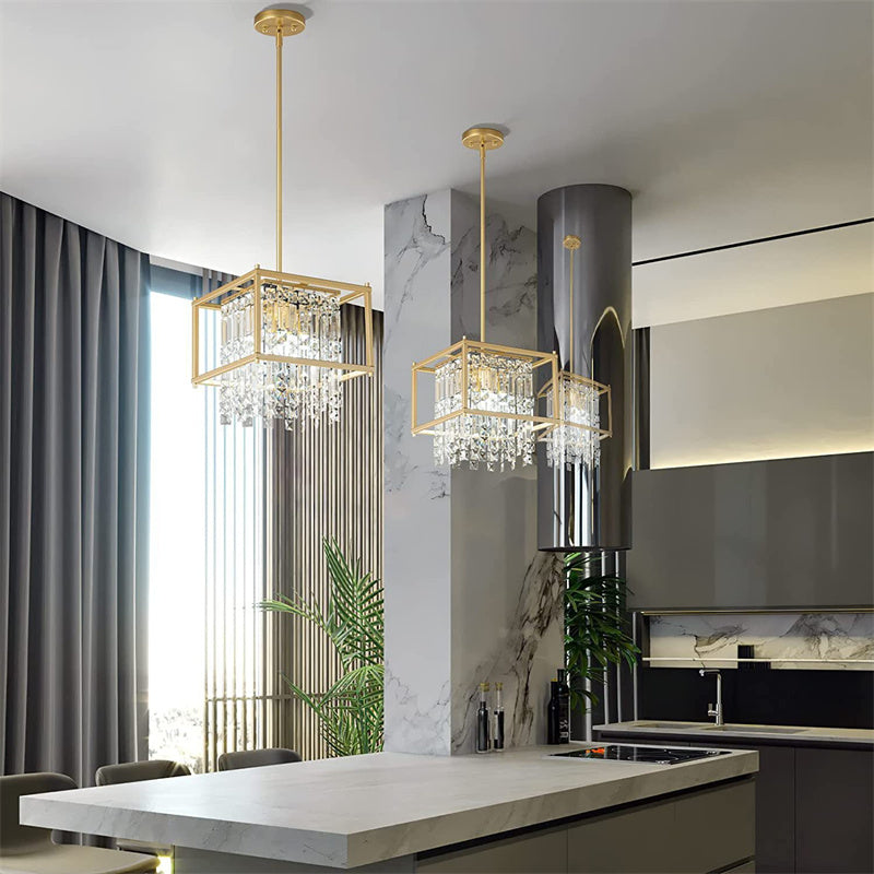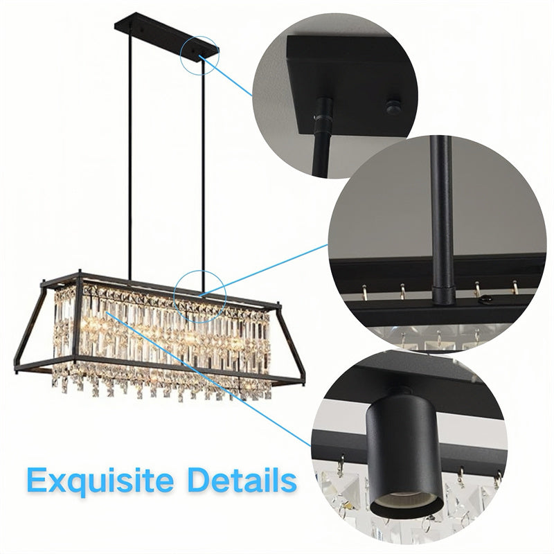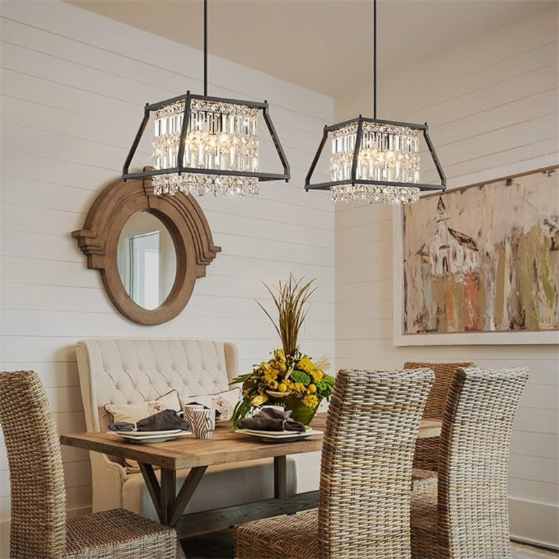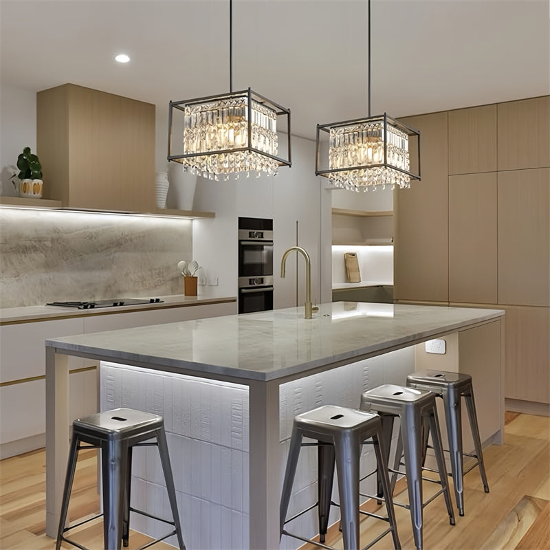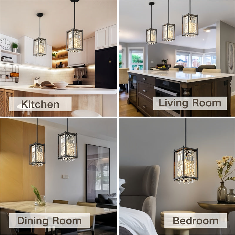 The appearance is simple and artistic, combining crystal and metal frame perfectly, charming modernity and industrial charm in one. Meanwhile, it is available in a wide range of shapes and sizes, ideal for kitchen islands, dining rooms, living rooms, bedrooms, halls, hallways, farmhouses, and more.