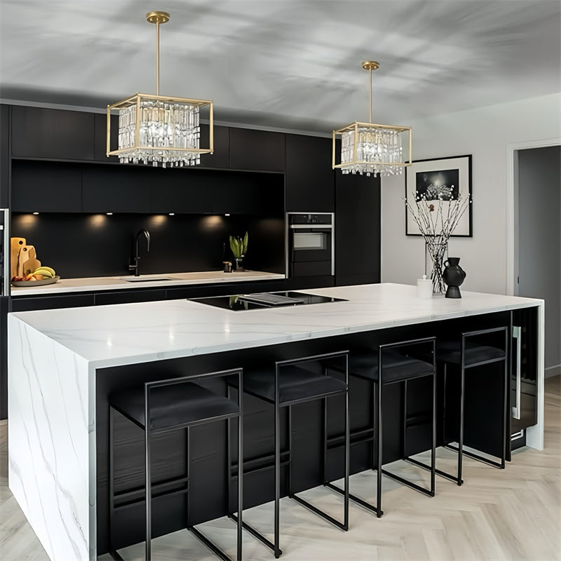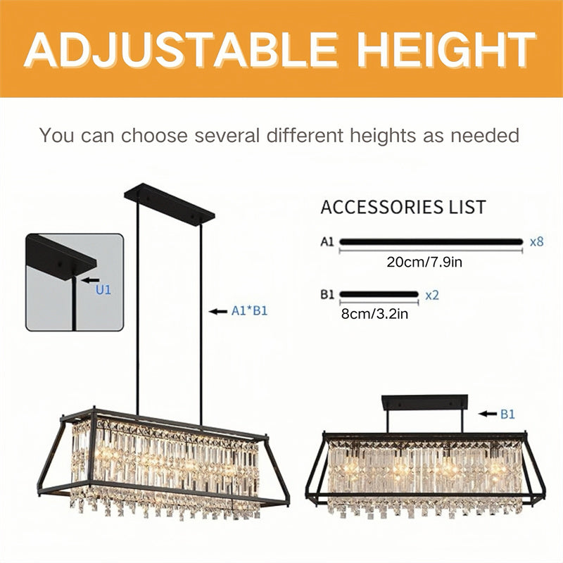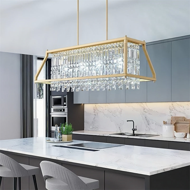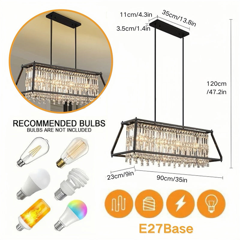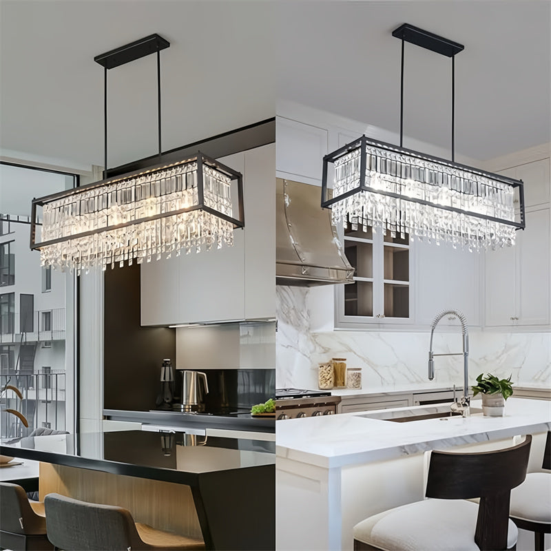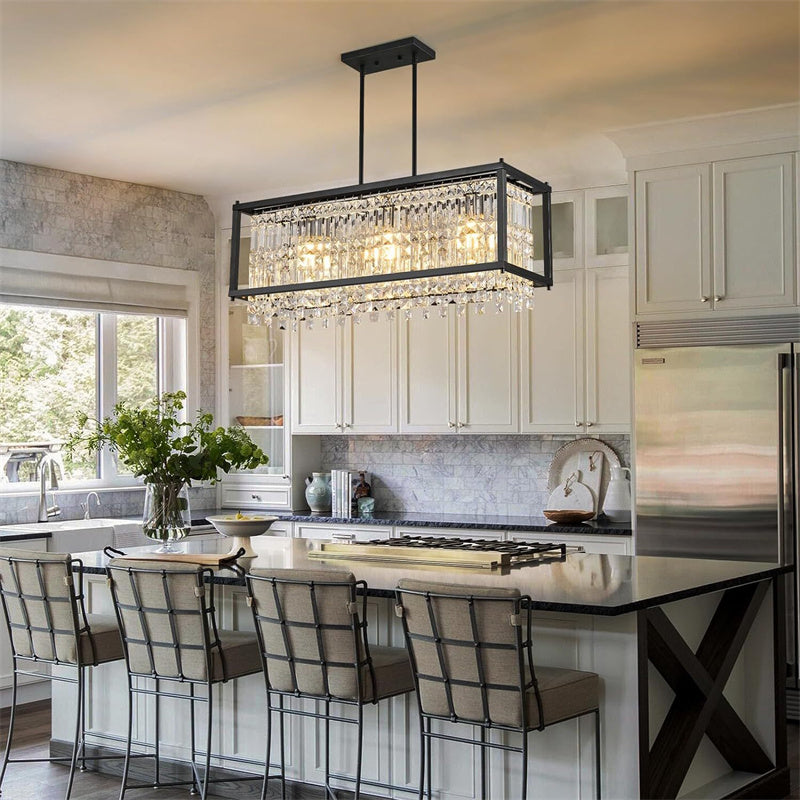 The appearance is simple and artistic, combining crystal and metal frame perfectly, charming modernity and industrial charm in one. Meanwhile, it is available in a wide range of shapes and sizes, ideal for kitchen islands, dining rooms, living rooms, bedrooms, halls, hallways, farmhouses, and more.