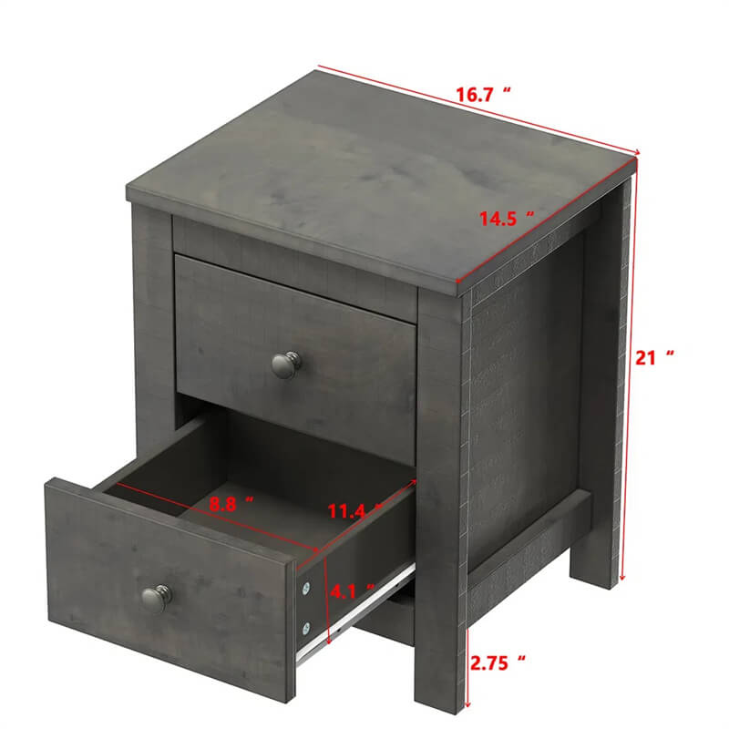 This nightstand set features a retro farmhouse aesthetic, perfect for enhancing the style of any. Antique-style hardware enhances the nightstand's nostalgic feel while providing easy access to your stored items with smooth gliding drawers.