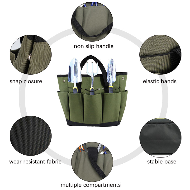 Our gardening tote bag is a great helper. It can keep all your garden tools well organized and easy to find. Put the tools in the storage tote bag after each use to avoid losing these tools.