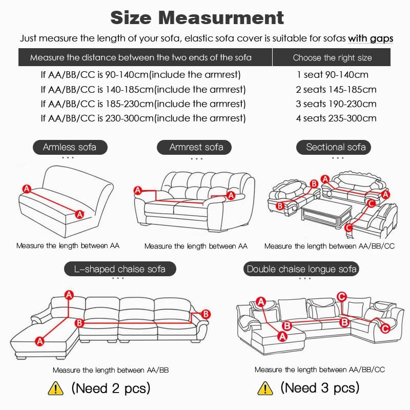 - TIPS:If the measured size of your sofa is close to the critical size or your sofa has a high back, it is recommended that you buy a larger size sofa cover. A larger sofa cover is more suitable than a smaller sofa cover.