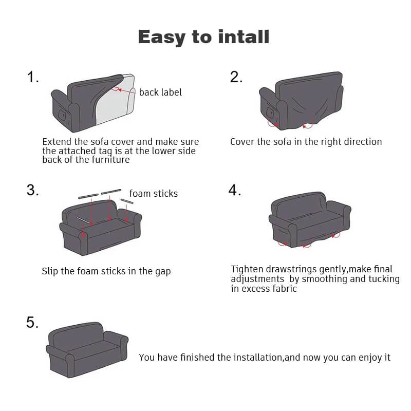 - Buy two pieces, put our sofa covers on the main sofa and the chaise seat respectively, and use the bottom straps to secure the sofa covers firmly.