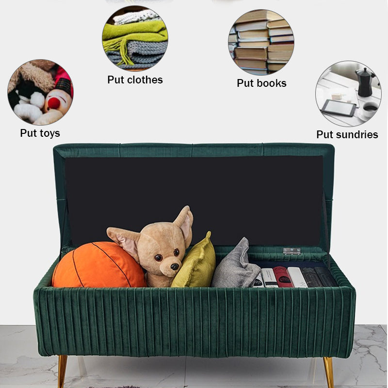 【Premium Materials】Designed with velvet cushions, this storage stool is the perfect combination of comfort and style. Our storage footstool has thick cushions and foam pads, which can provide you with complete comfort and soft support when used as an extra seat.
