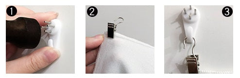 - Clamp the two corners of the tapestry with clips;