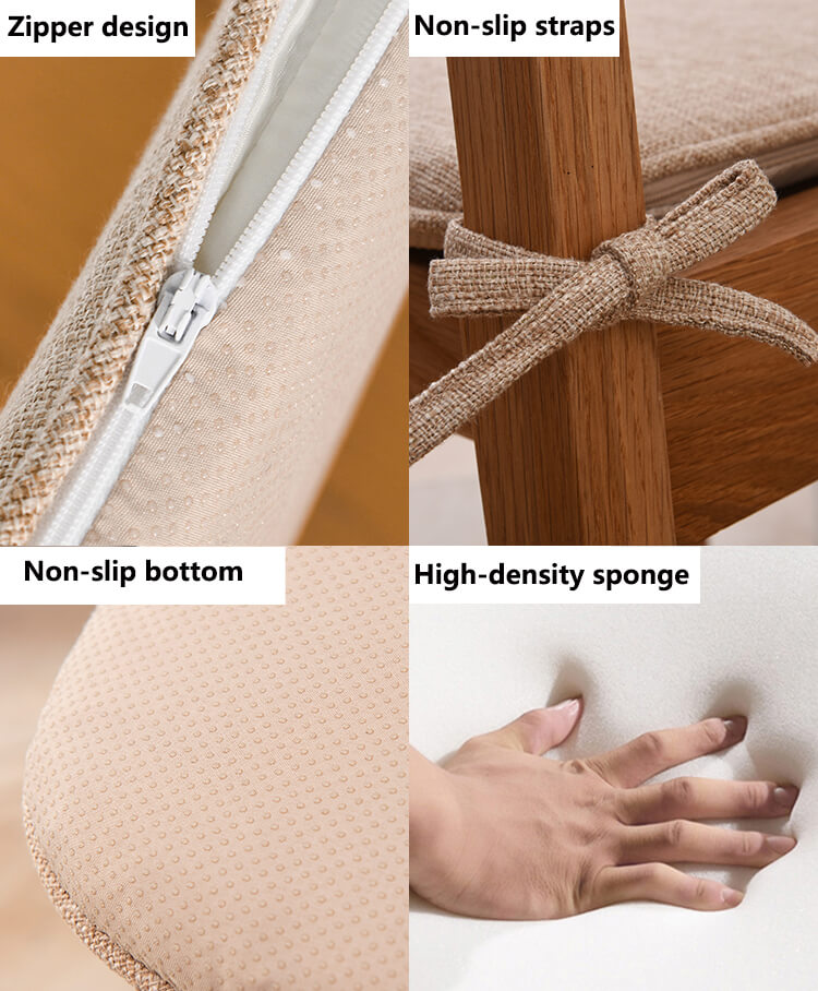 Our chair cushions are made of high-quality linen surface and filled with 3cm high-density foam to bring soft comfort to your body.