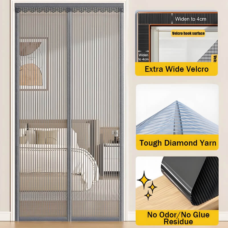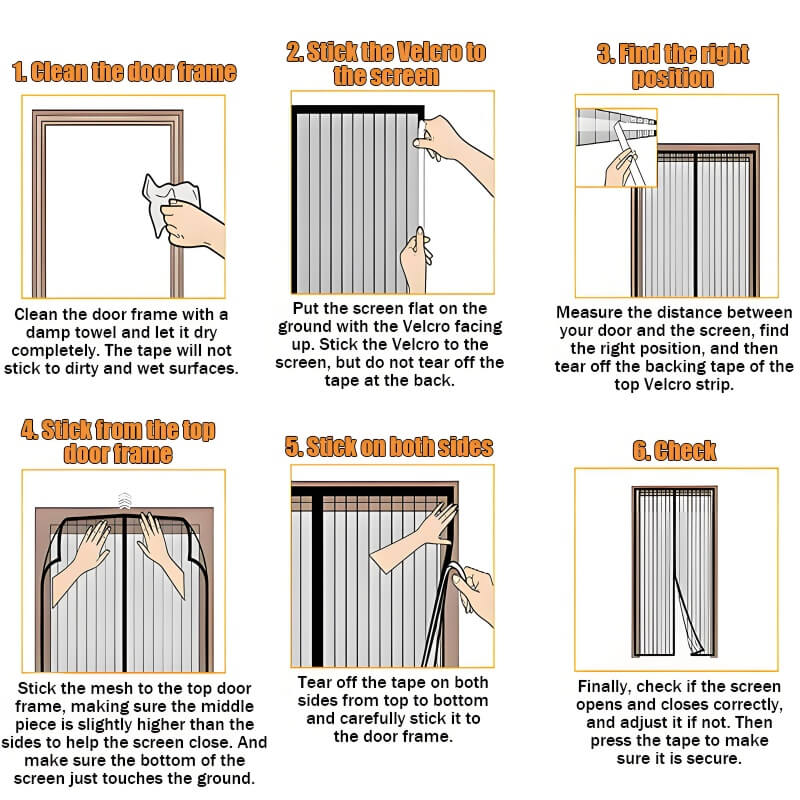 Premium Design: The mesh is made of high-density anti-oxidation material, which is sturdy and durable. Even the smallest bugs and mosquitoes cannot get in while still letting fresh air in. Velcro-style strips secure the screen door to the door frame, forming a full-frame seal for maximum security. Both sides are equipped with straps to hang the screen door on the side for easy opening and closing.