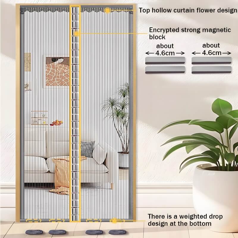 Easy Insect Protection: A screen door curtain can effectively block annoying insects. Especially in the hot summer, flies, bees, mosquitoes, and other insects frequently invade while keeping fresh air circulating. When you pass through the screen door, the strong magnetic strip will effectively magnetically seal, providing worry-free insect protection. Enjoy a comfortable and pleasant summer.