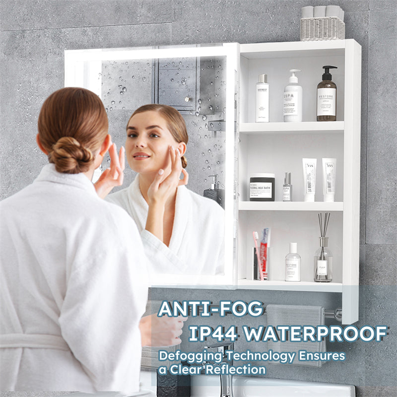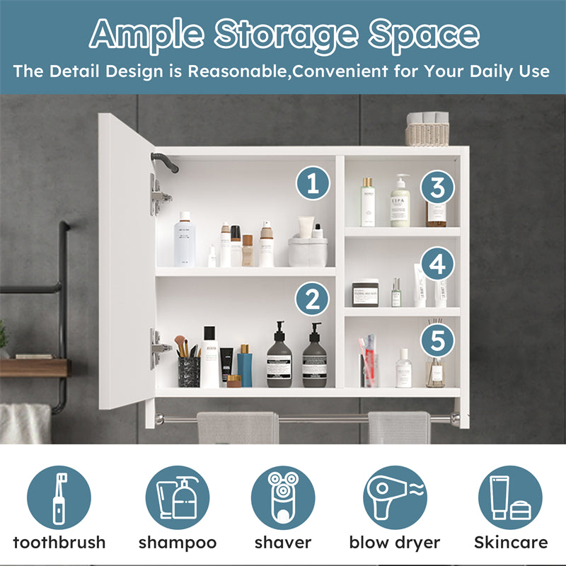 Behind the mirror of this medicine cabinet is a two-layer hidden storage compartment, and on the right is a three-layer external storage compartment, which can meet your diverse storage needs. Underneath the mirror is a stainless steel towel rail, so you can easily use your towels while washing