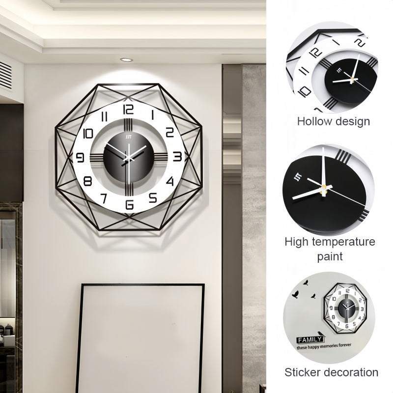 ★【Modern Classic Design】This classic clock is made of high-quality metal materials, metal octagonal design, classic black and white, three-dimensional elegant and sturdy, exquisite welding, and perfect spraying process, making the wall clock durable and colorful.