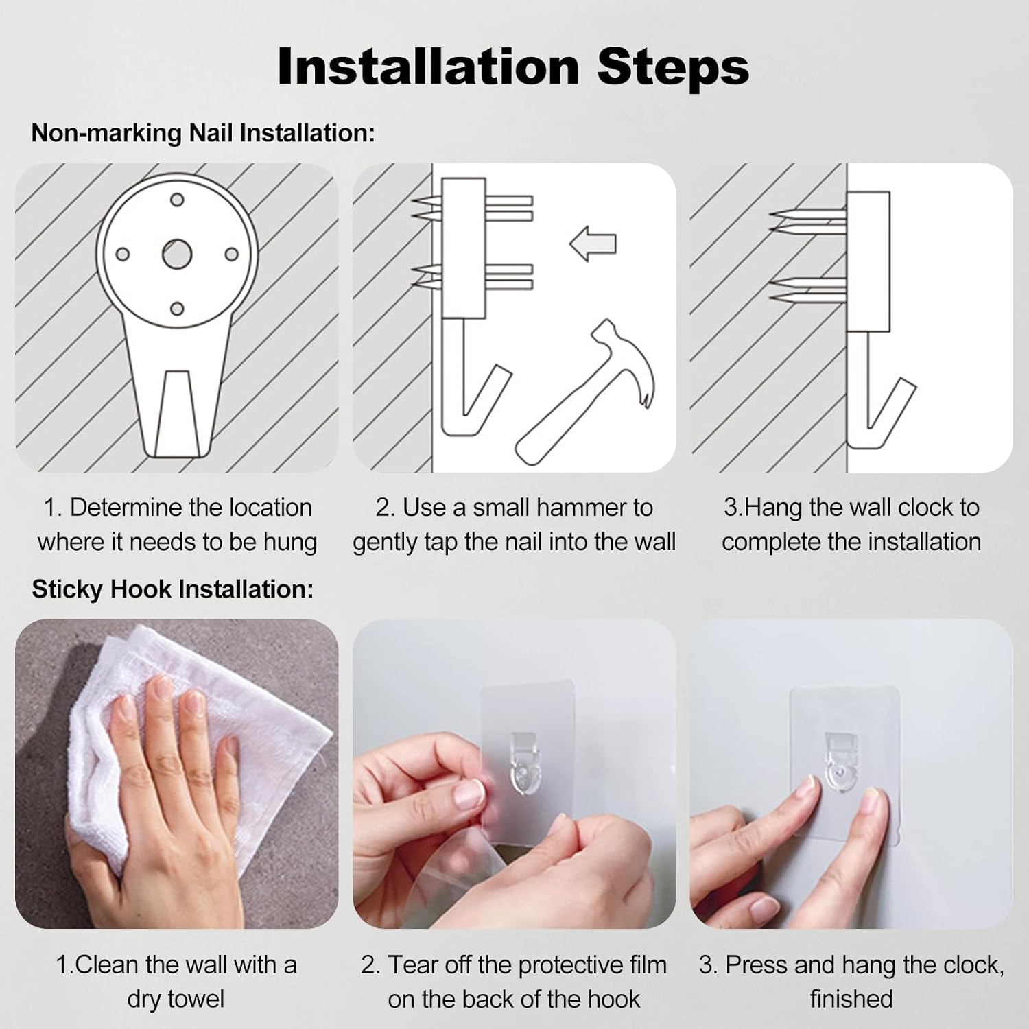 【Silent movement】High-quality silent quartz movement, after countless punctual tests, accurate and absolutely quiet, less than 20dB, ensuring a quiet working and sleeping environment without any noise.