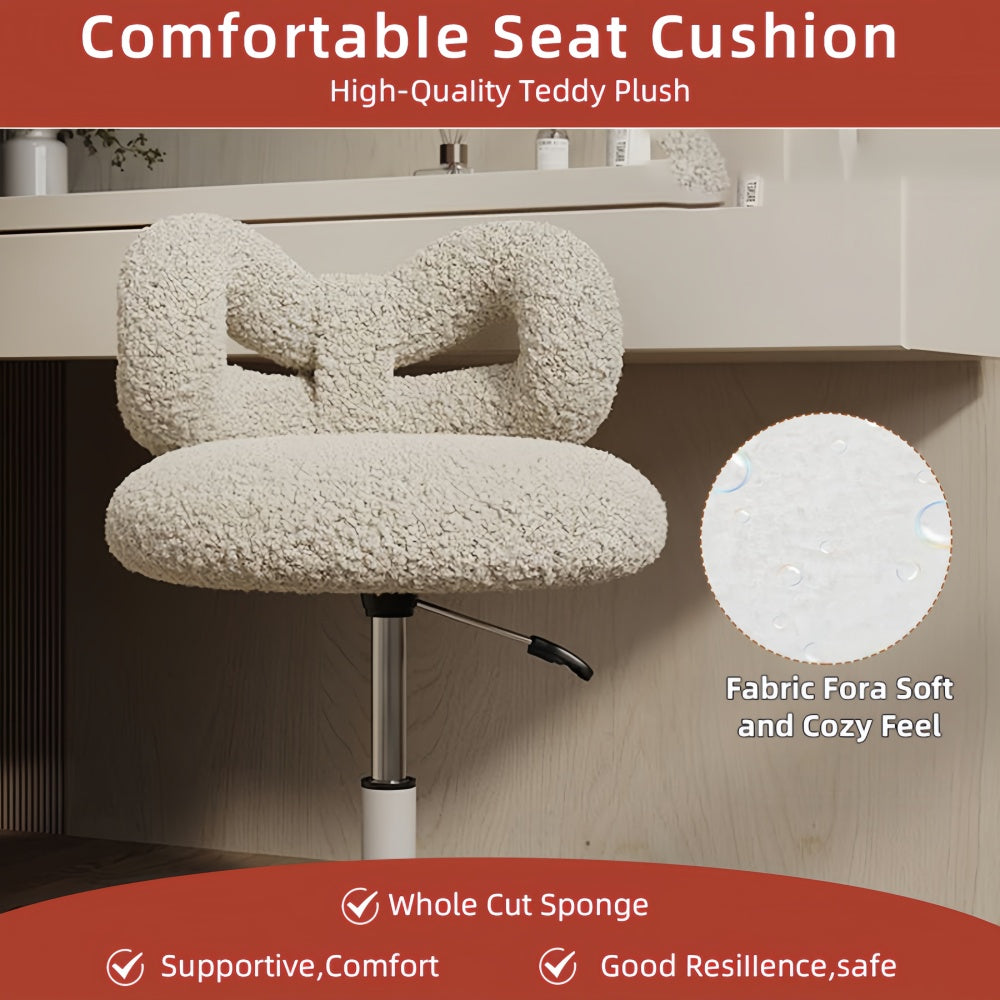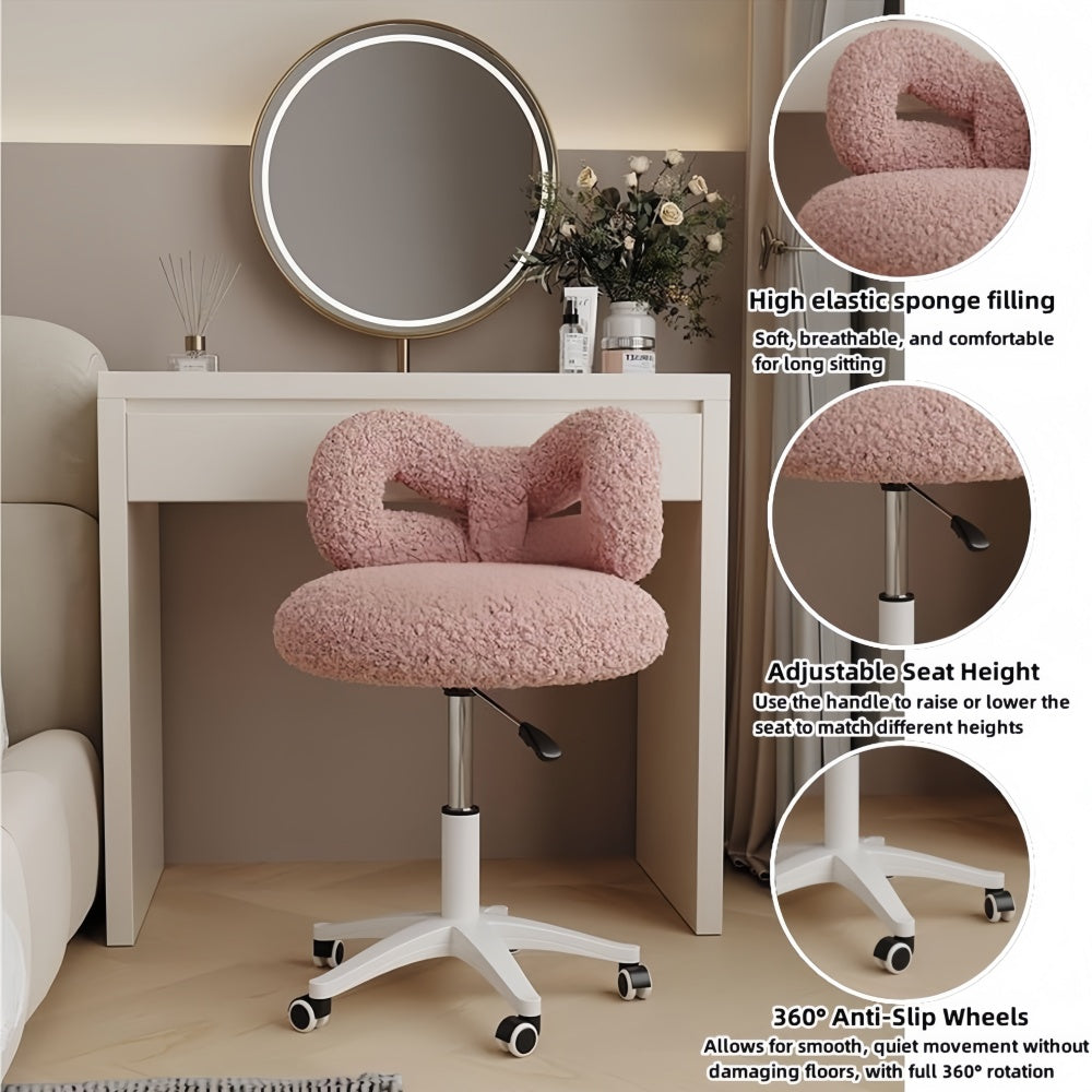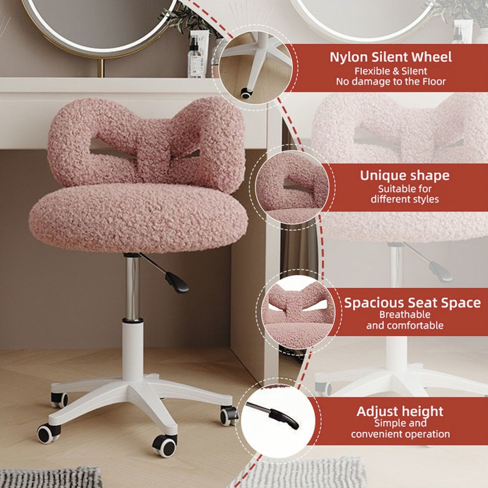 Bow Seat: This dressing chair features a high-density sponge cushion covered with soft hoop fabric. It provides a soft and comfortable sitting position, whether you are putting on makeup, working, or studying. The supportive backrest provides gentle lumbar support, allowing you to feel comfortable all day.