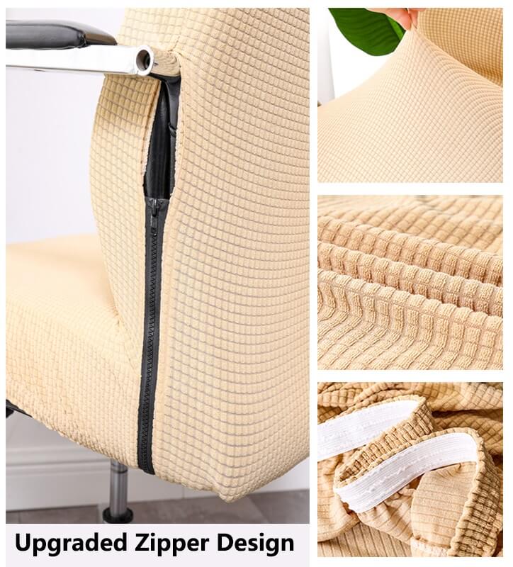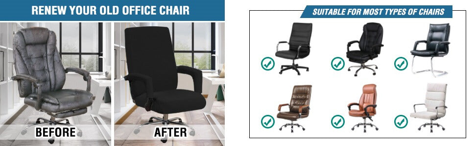 This newly upgraded office chair covers is Crafted from durable and soft high stretch knitted jacquard fabric, 1 Piece(body and seat covers both together)to provide effortless installment.It is suitable for most computer office chairs.