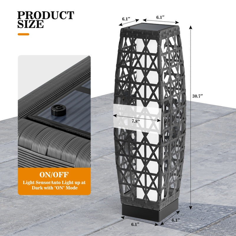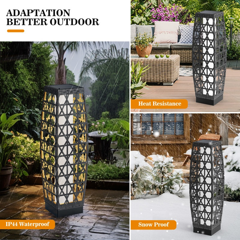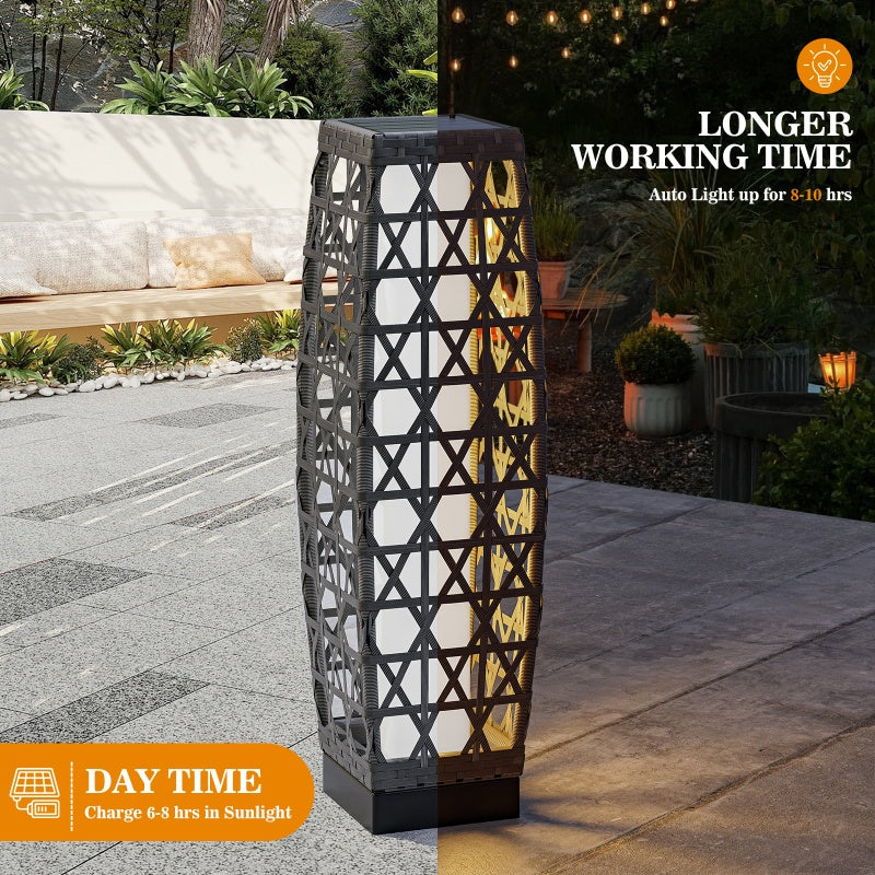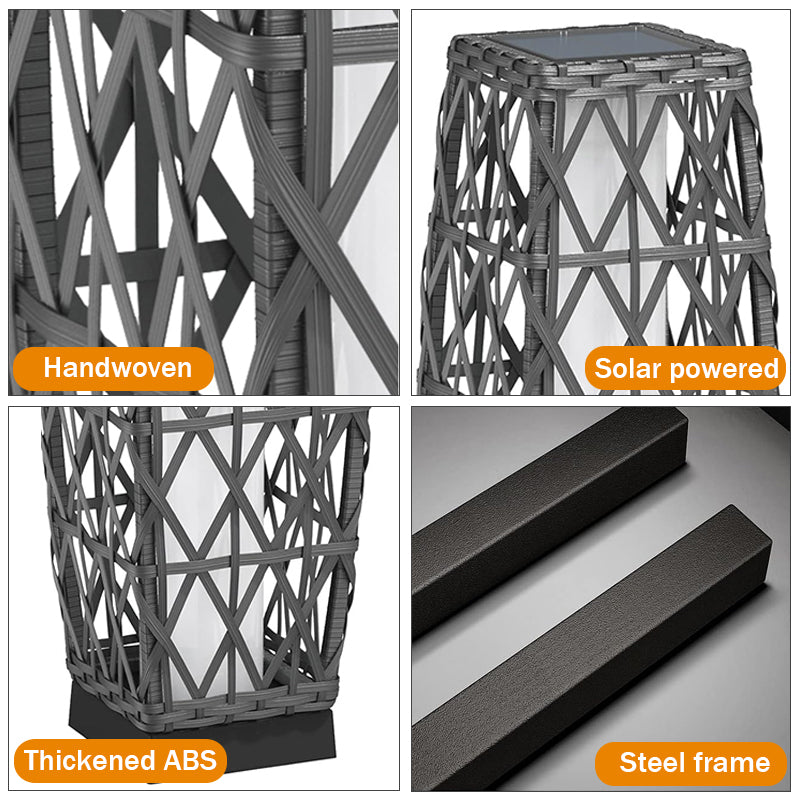 Solar Floor Lights: These outdoor lanterns are powered by solar energy and do not require wiring, which not only saves you energy costs but also facilitates outdoor use. After charging in the sun for 8H-10H, these rattan floor lights will work at night for 8H-10H