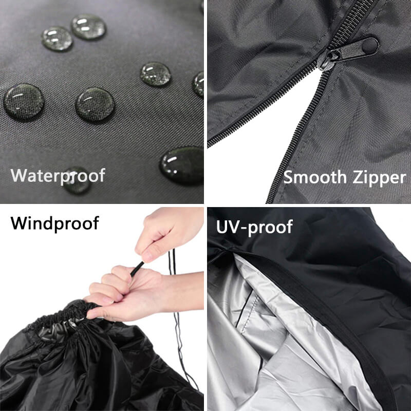 Drawstring with Toggle: Drawstring at the hem for quick adjustment, easy to fit, excellent wind resistance, effectively prevents wind from penetrating, and minimizes damage from wind. With this design, the cover won't wiggle like a sail in heavy wind.