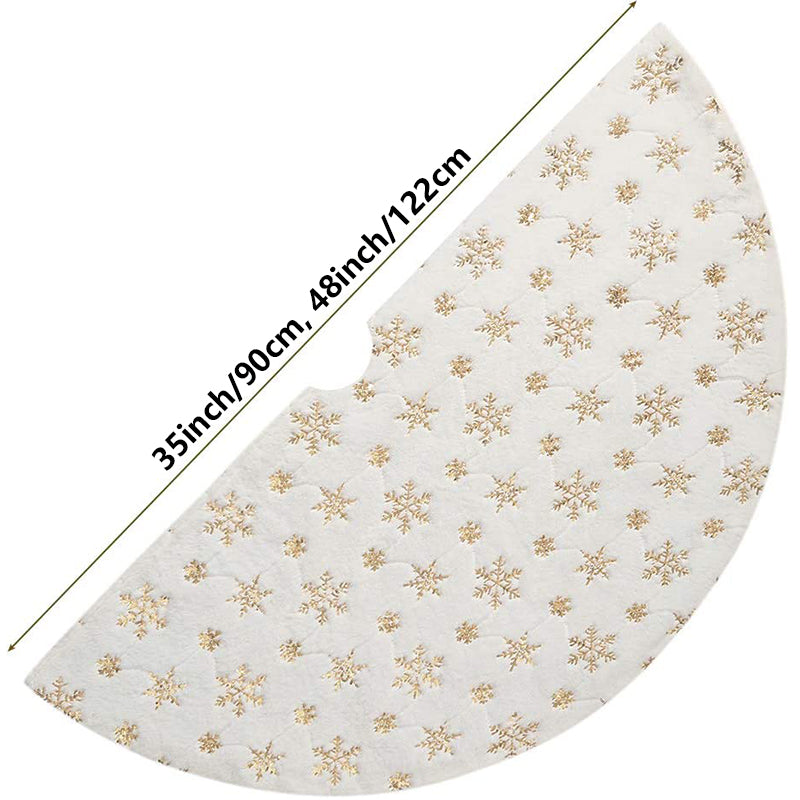Premium Quality: Christmas tree skirt uses high-quality plush fabric material with soft and comfortable texture, double-decker design, back with non-woven fabric, and front with sequin embroidery snowflakes, extremely durable and soft.