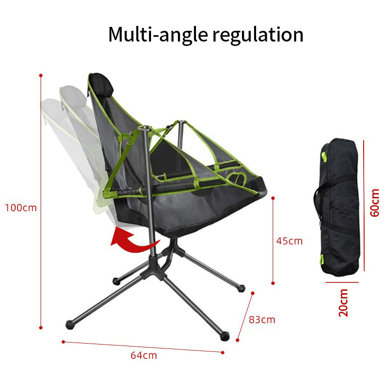 Have the first-ever swinging and reclining camp chair that takes relaxation to a new level.
