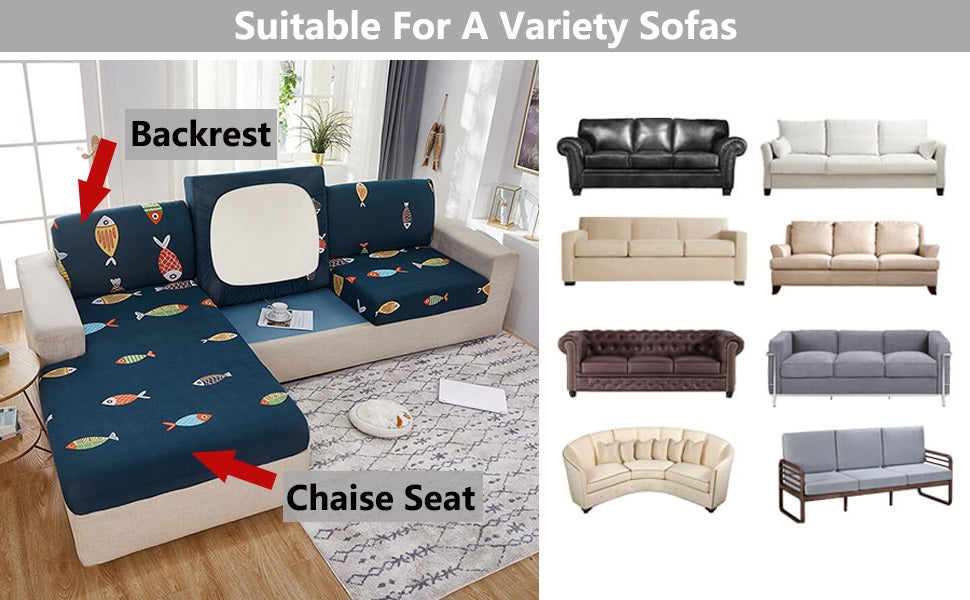 Super Stretch: 85% polyester and 15% spandex stretchy fabric make our sofa seat cushion cover suitable for 90% of the sofa cushions, such as Box-cushion, T-cushion, sofa back cushions, and chaise longue cushions.